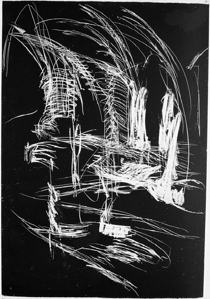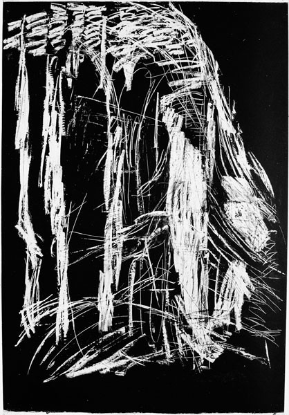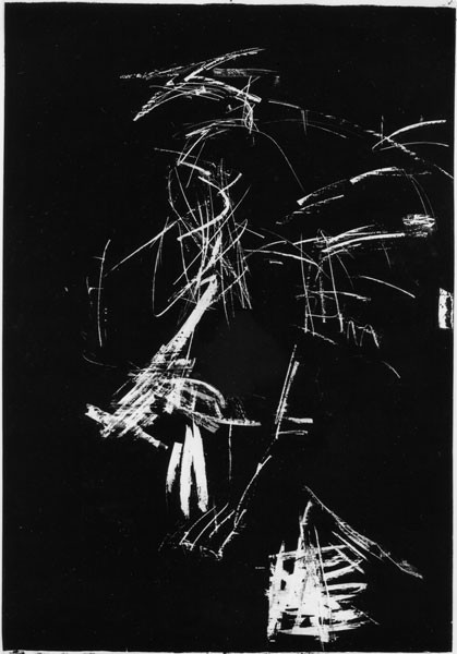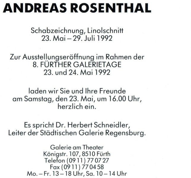 Nur wenige Meter vom Aktionsforum entfernt stellt die Galerie am Theater Schabezeichnungen und Linolschnitte des Düsseldorfer Künstlers Andreas Rosenthal vor. Nur in Schwarz-Weiß gearbeitet,