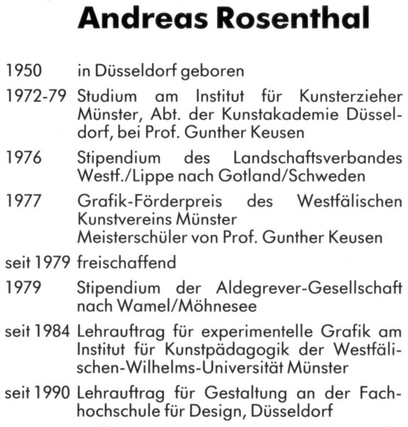 werden bedeutungsschwangere Motive wie Adler, Raum oder Kopf grafisch interessant ausgelotet. Zugleich bietet die Ausstellung einen Überblick über Rosenthals Entwicklung seit 1986.