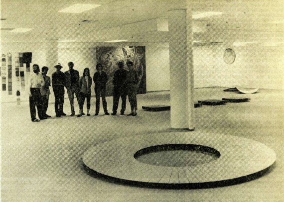 Werner Knaupp (Mitte) mit Schülern seiner Nürnberger Akademieklasse in der Ausstellung. Foto: Kögler