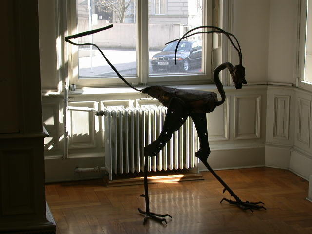 Andere Künstler arbeiten bevorzugt mit Abfallmaterialien: Martin Mushomas wunderschön-schrecklicher Paradiesvogel, eine feingliedrige furchteinflößende Stahlskulptur, scheint jeden Moment zum