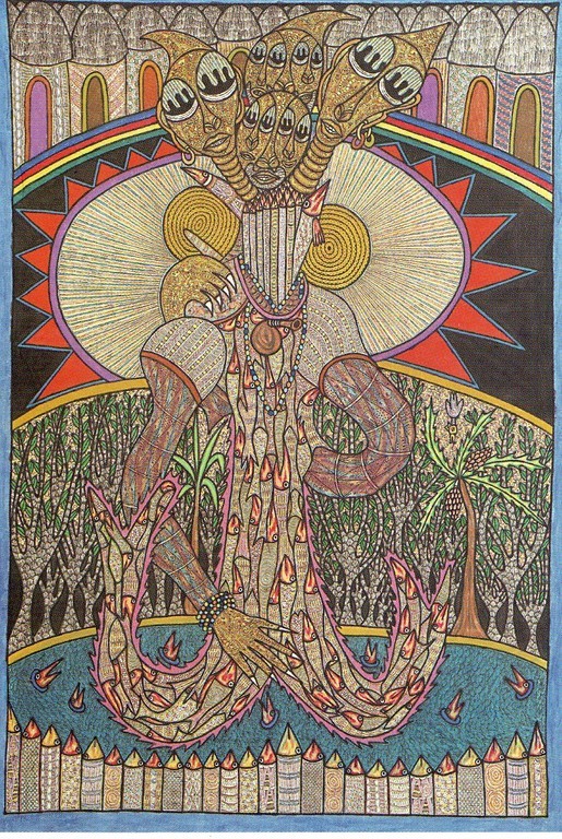 und geben den detail- und ornamentreichen Bildern, die von der Geschichte seines Volkes, den Yoruba, handeln, eine plastische Dimension.