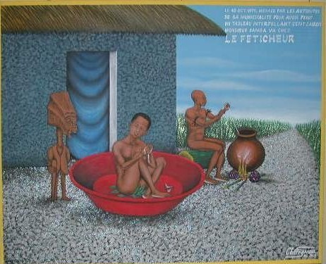 Das Afrikas Künstler häufig erst über Umwege zur Kunst finden, zeigt das Beispiel Middleart: Er begann als Schildermaler für Frisörgeschäfte und wandte sich dabei mehr und mehr aktuellen Themen