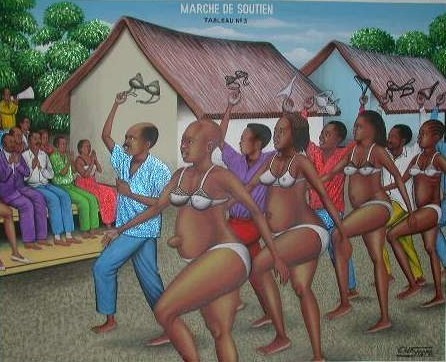 Chéri Samba: „Marche de Soutien“ aus der Ausstellung in der Bamberger Dessauervilla. Foto: Emil Bauer