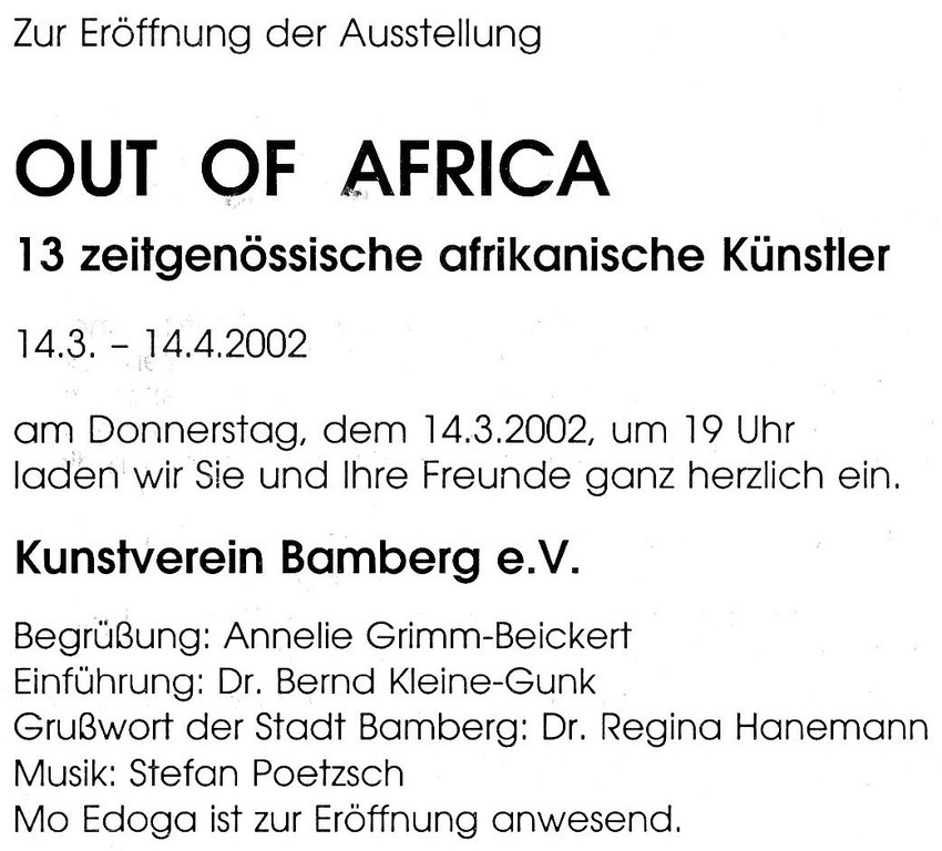„Out of Africa“ heißt die Ausstellung mit Werken 13 zeitgenössischer afrikanischer Künstler, die der Kunstverein Bamberg in