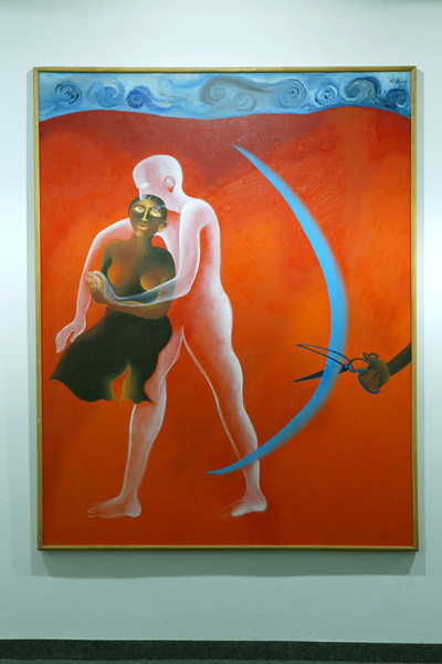 was born 1954 in Delhi, Indien. Arpana Caur is a leading Indian painter and graphic artist. She comes from a Sikh family who fled the Pakistani West Punjab to the Republic of India in 1947 during the confusion over the partition of British India.In 1994 she was commissioned a large work by the Hiroshima Museum of Modern Art to create a mural to mark the 50th anniversary of the bombings.
