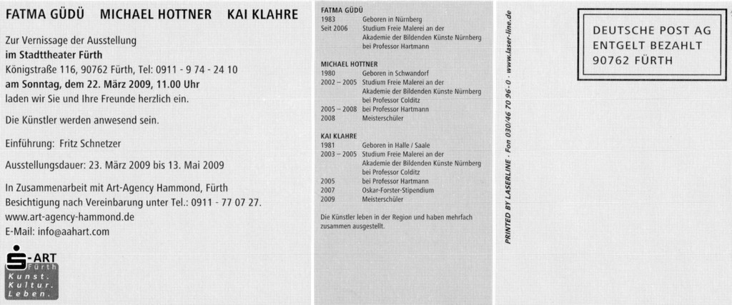A present by Kai Klahre to John and Renate Hammond on the occasion of his exhibition together with Fatma Güdü and Michael Hottner at the Stadttheater Fürth in 2009.