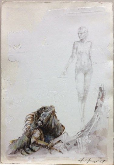 Den Atem verschlägt es einem beinahe bei zwei Arbeiten von Kai Klahre. Dargestellt sind Menschen in beklemmenden Situationen, Szenen wie aus einem Thriller. Das eine zeigt einen am Boden, in einer dreckigen Pfütze liegenden Menschen. Ein Hund, eine Bestie, jagt ihn. Rundum alles weiß wie Schnee, aber schmutzig. Wie dieser Körper da liegt, Ellbogen, Knie und Knöchel rot von den eisigen Temperaturen und aufgeschürft vom Sturz, wirkt er völlig schutzlos. Das Tier wird gleich über ihn herfallen und ihn zerfleischen... Eigentlich möchte man wegschauen, doch wie Klahre die Stofflichkeit dieses geschundenen Körpers malerisch umsetzt, fesselt und erinnert stark an die große Kunst der barocken Meister. Auch Klahres kleine Plastiken sind meisterhaft. Der Künstler wurde 1981 geboren und erhielt 2007 das Oskar-Forster-Stipendium. Seit diesem Jahr ist er Meisterschüler bei Hartmann.