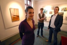 enseits aller Oberflächlichkeit: Fatma Güdü und die beiden Akademie-Meisterschüler Michael Hottner (Mitte) und Kai Klahre zeigen ihre Arbeiten im Foyer des Stadttheaters. © Thomas Scherer