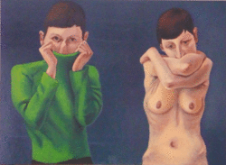 «Ein sehr seltsamer Vorgang», kommentiert Hirschbeck. «Ich hätte große Lust gehabt, hinzuschmeißen, doch die Karten waren ja bereits gedruckt, die Vorbereitungen im vollen Gange. Im übrigen habe ich einen Vertrag mit der Art-Agency Hammond, nicht mit Müller.» Hammond nimmt Hirschbeck, dessen Aktarbeiten in hiesigen Kunstkreisen hohe Anerkennung genießen, aus seiner Kritik ausdrücklich heraus. «Er hat sich zu jeder Zeit fair und korrekt verhalten.» Gegen Müllers Anweisung habe auch er, Hammond, nichts ausrichten können. Zwei weitere Arbeiten aus dem Akt-Zyklus musste Hirschbeck schon im Vorfeld der Vernissage aussortieren.