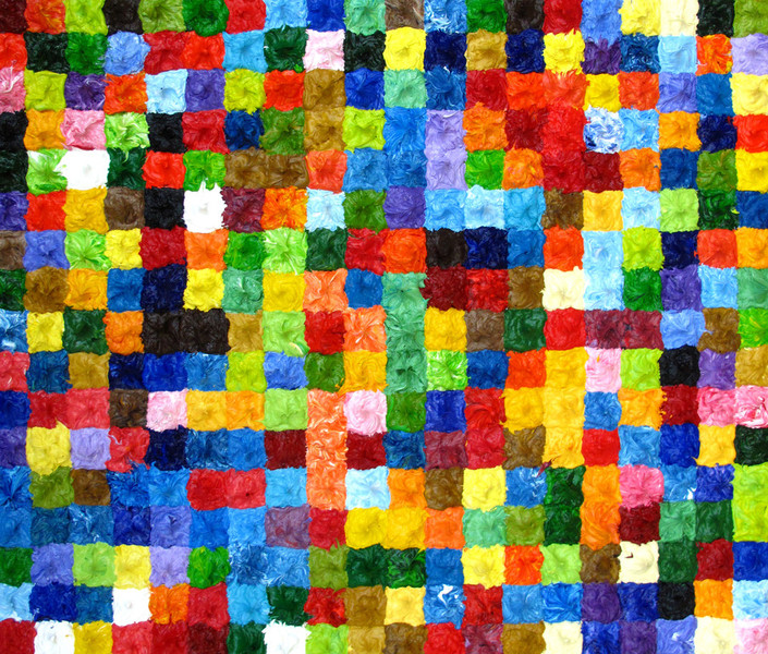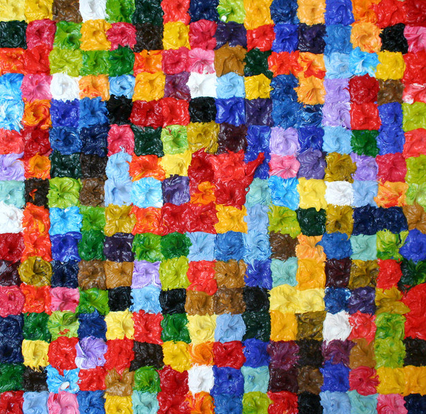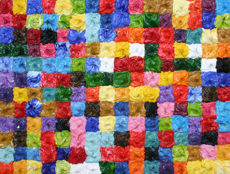 Noch plastischer, fast aus der Wand quillend, auch farblich noch eine Spur intensiver präsentieren sich die Strukturen in Öl von Katharina Dietlinger. Ihr Werk «Ohne Titel (Tribüne)« lässt nicht nur