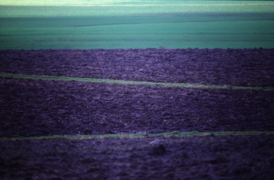 Äcker, Fluren, Feldränder - zeigt. Kraftvoll, erdig, aber auch geheimnisvoll präsentiert sich die bereinigte, von Menschenhand straff organisierte Landschaft, von Autenrieth mit scharfem Blick vor