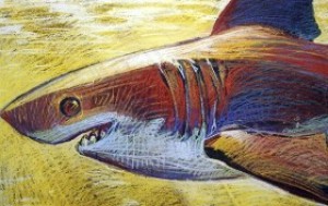 wuchtigen, kraftvollen Gouachen, sondern die Pastellwerke, die seine zeichnerische Qualität demonstrieren. Sie sezieren mit scharfem Blick einen Haifisch und einen weiblichen Körper. Insgesamt hat