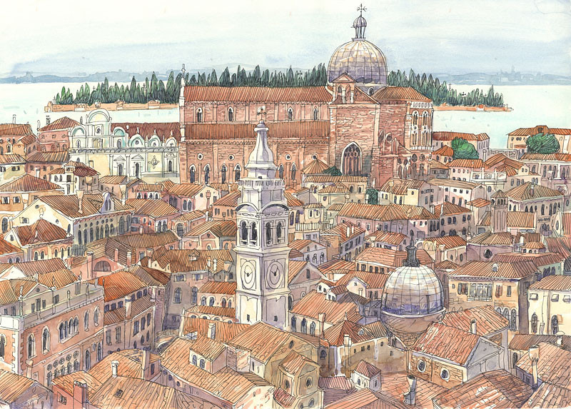 Einheimischen. Und dann wiederum, sorgsam konzipiert, ein Brückenschlag nach Venedig: Neubauer hat prächtige Panoramen aquarelliert,