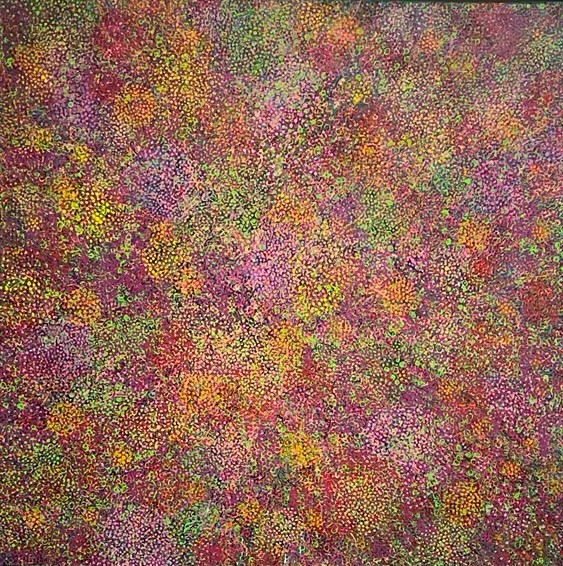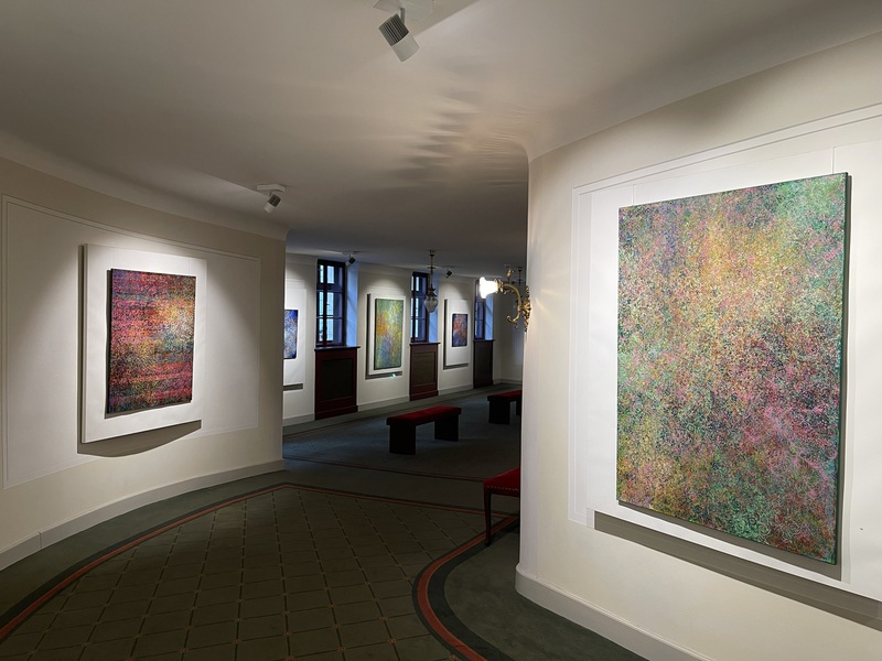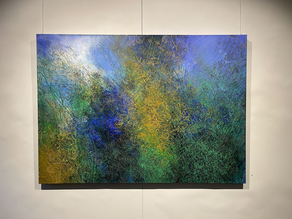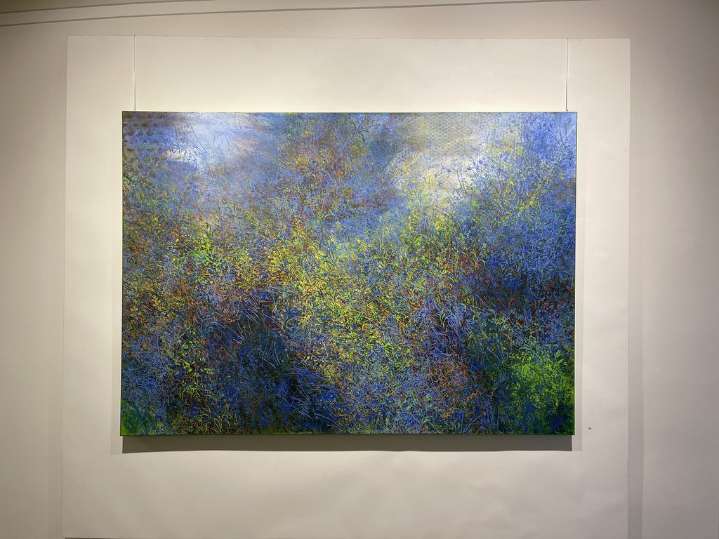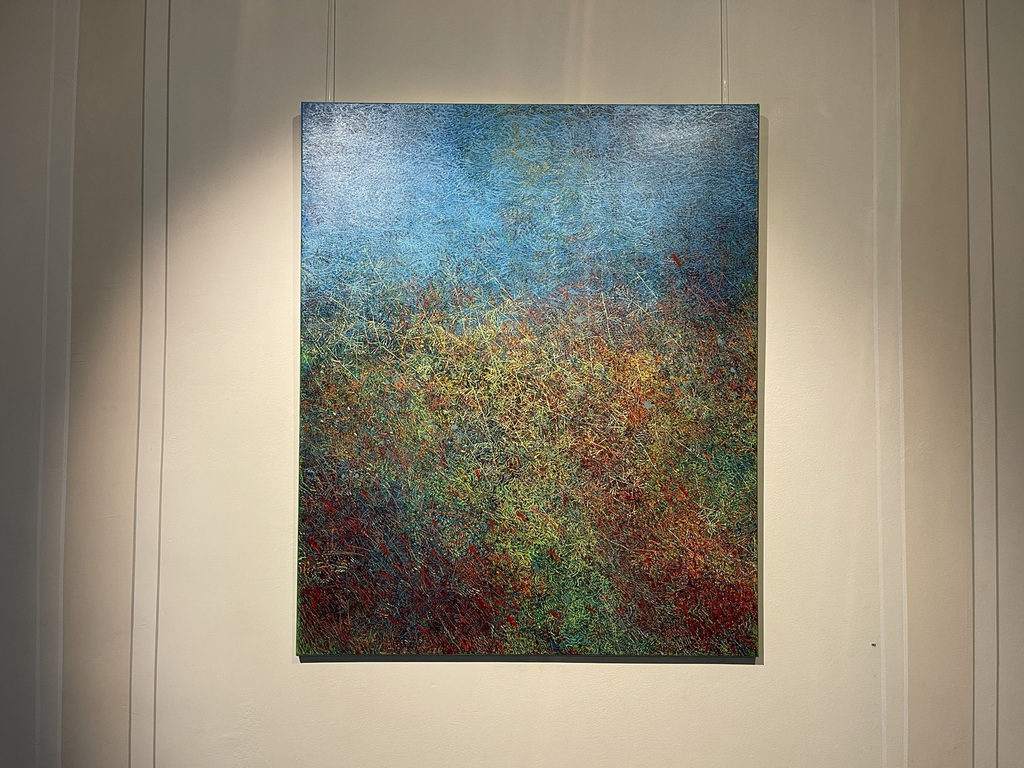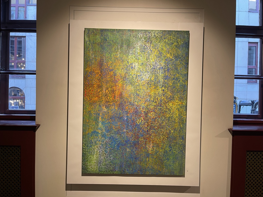 Teresa Wiechova arbeitet in Gouache, mit Walzendruck auf Leinwand oder mixed media auf Canvas. Sie kreiert Strukturen. Jahreszeiten manifestieren sich in Farben, werden zu Wiesen, Gärten, Meeren.