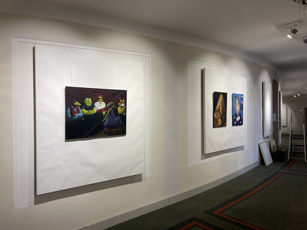 im Stadttheater hängen, sind es die Tiere in Menschenkleidung - vor allem die, deren ikonische menschliche Vorbilder auf einen Blick zu identifizieren sind.