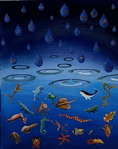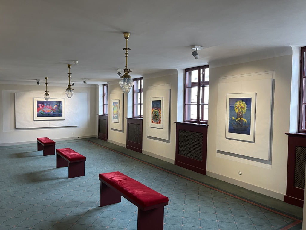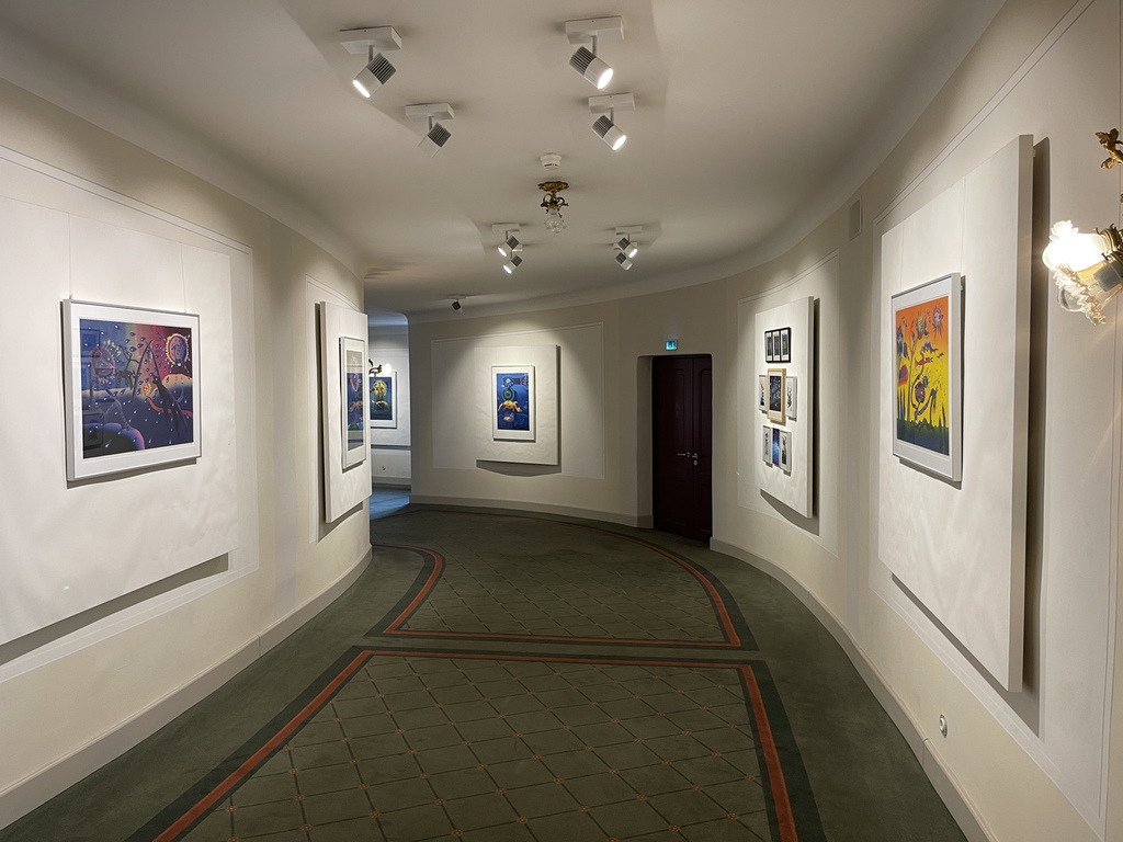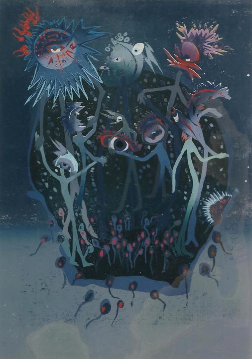 Da erinnert das Raumschiff auf einem der Werke etwa an eine Qualle, die im blauen Meer schwimmt, gefolgt von kaulquappenartigen Geschöpfen. Die Bilder strahlen etwas Primäres, Naives aus, ohne naiv