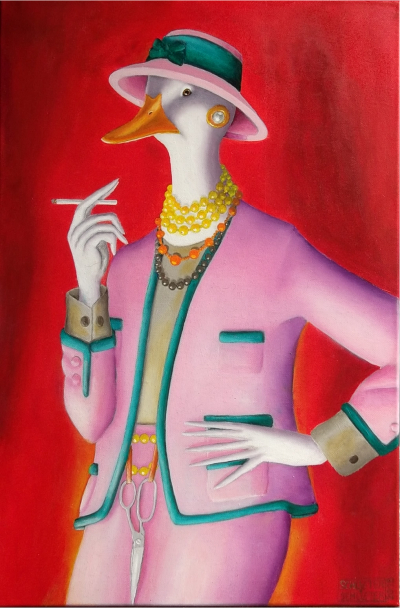 Ente in der Pose von Coco Chanel |