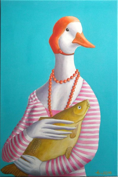 Die Ente mit dem Fisch (nach Leonardo da V.) |