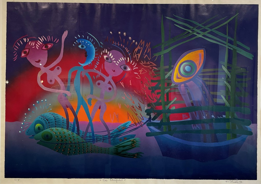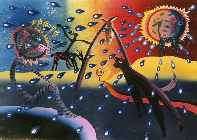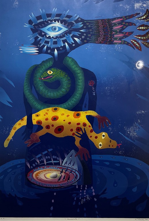 Eigenwillige Bildsprache: Heinz Thurn kombiniert tierähnliche Wesen mit den vier Elementen. Foto: Hans-Joachim Winckler