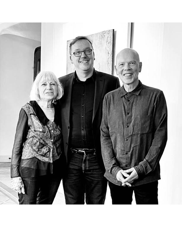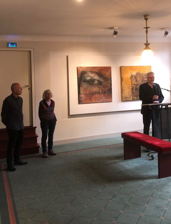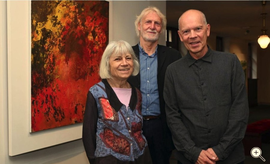 Der Galerist John Hammond (Mitte)mit der Regensburger Malerin Maria Seidenschwann und Ihrem Heroldsberger Kollegen Wolfgang Walter. Photo: Hans-Joachim Winckler