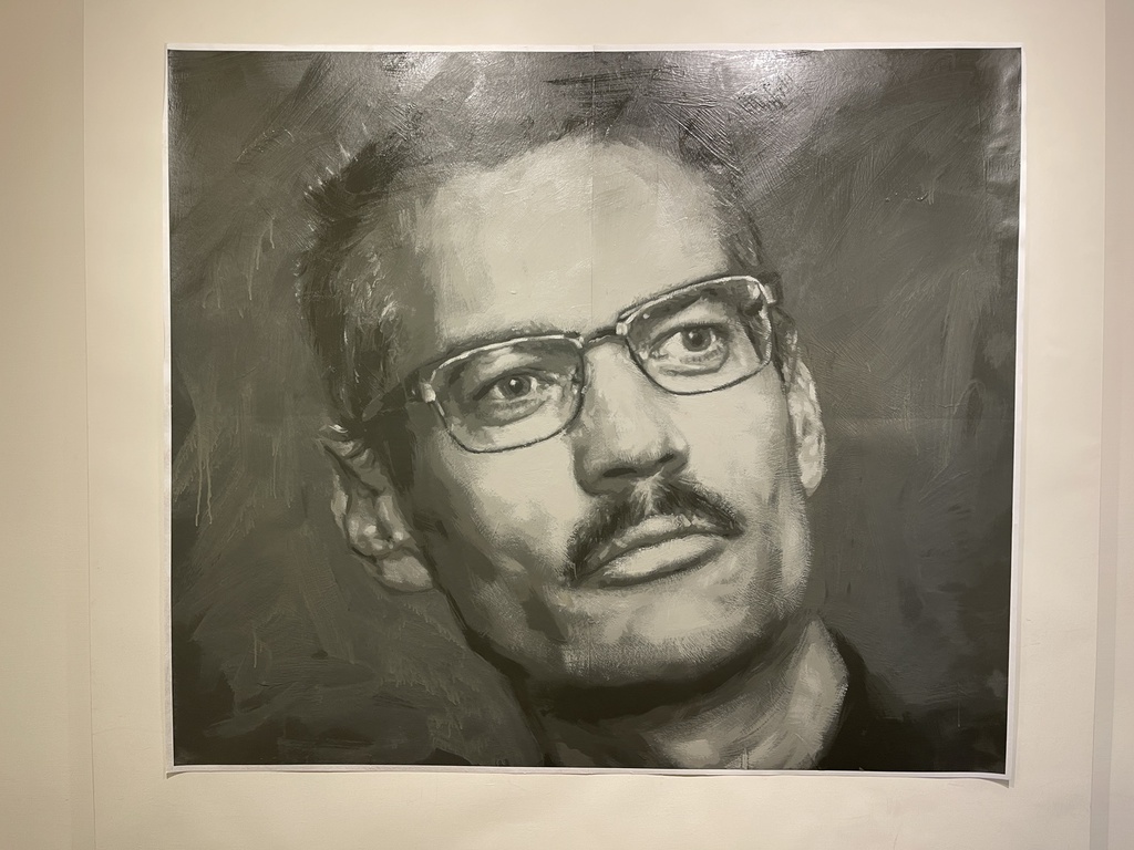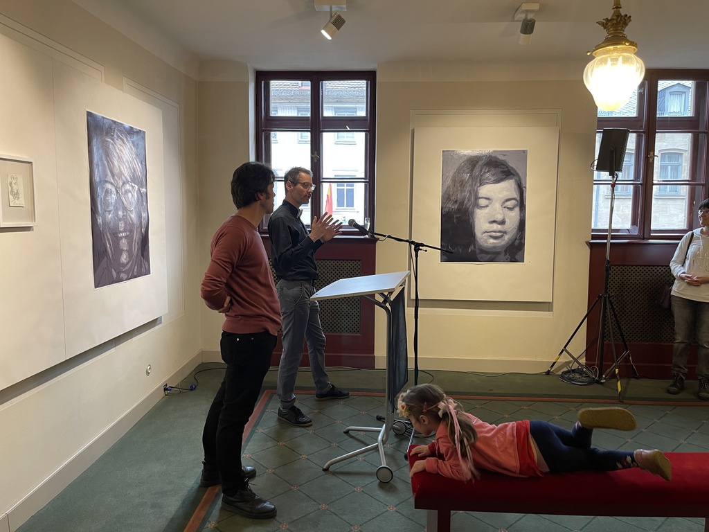 FÜRTH Axel Gercke, 1979 in Erlangen geboren, studierte an der Akademie der Bildenden Künste in Nürnberg und ist einem breiteren Publikum bekannt durch seine Illumination der Nürnberger Burg 2009. 2022 erhielt er den NN-Kunstpreis. Im Stadttheater zeigt er Porträts von Personen in sehr realistischem Stil voller handwerklicher Rafinesse.