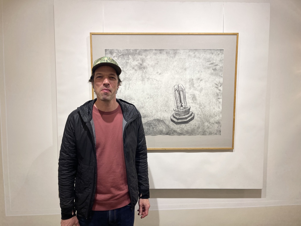 Das Zeichnen ist augenscheinlich sein Ding: Daniel Bischoff war an der Nürnberger Akademie Schüler von Diet Seiler, Ende April wird er im Neuen Museum der Nachbarstadt ausstellen. Sein Werk umfasst Malerei, Zeichnung, Druckgrafik, Objektkunst und Installation. Foto: Hans-Joachim Winckler