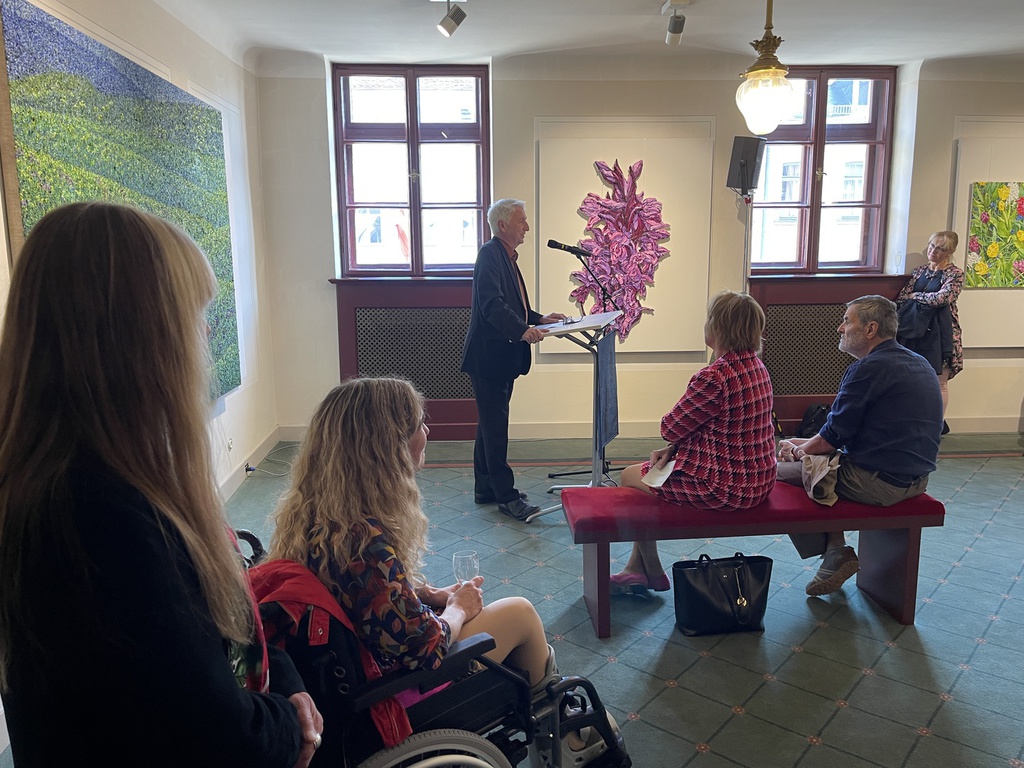 Mit diesen so poetischen, wunderbaren Worten von Gerlinde Pistner darf ich Sie liebe Kunstfreundinnen und Kunstfreunde heute, ganz herzlich begrüßen, insbesondere die beiden Künstlerinnen mit ihren Familien, John Hammond, den Kurator der Ausstellung und Werner Müller, den Intendanten des Stadttheaters Fürth.