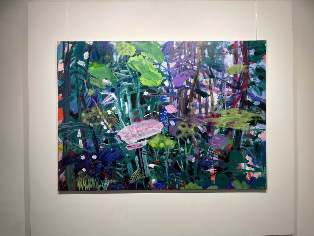 Von Katharina Gierlach sind in dieser Ausstellung zahlreiche Arbeiten mit Seerosenmotiven, sowie Ausschnitten von Blumenwiesen, aber auch ein „Knabenkraut“, eine „Moorlilie“ und der „Böhmerwald“ zu entdecken. Ihre Ideen zu Motiven findet sie auf Reisen, in der Umgebung oder auf Fotografien: Natur in unterschiedlichsten Lichtsituationen, die sich in ihrem Kopf eingespeichert hat. Gierlach arbeitet bevorzugt in Serien und mit Öl auf Leinwand, aber auch auf Holz. Sie setzt Farbe bewusst ein und verwendet eine Malweise, in der sie diese pastos und großzügig und wie ein „skulpturales Material“ auf den Bildgrund aufsetzt. Bei aller Freude am Umgang mit dem Material Farbe wird zugleich die strategische, die konzeptionelle Seite in ihrer künstlerischen Haltung deutlich.