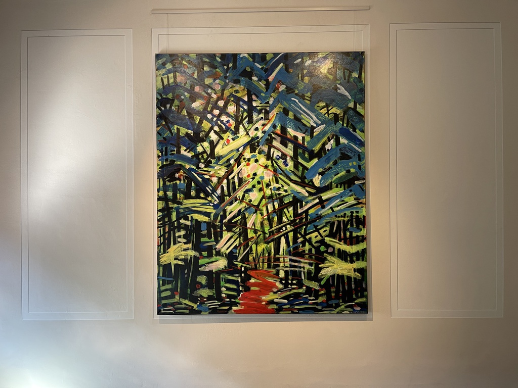 Gerlinde Pistner arbeitet mit Acryl auf Leinwand. Der Naturraum tritt uns hier als reine malerische Fläche ohne Illusion eines Raumes, ohne Tiefe entgegen. Natur, Wälder und Blumen erscheinen dschungelartig, „urwüchsig“, als ein atemberaubender Farbklang, ein bis hin zur Abstraktion aufgelöstes, fulminantes, pulsierendes „Stakkato“ aus gesetzten Pinselstrichen, ein intensives Dickicht aus Linien und Flächen, die trotz aller Fülle hervorragend zusammenklingen. Die Grenzen zwischen Motiv und Umraum überwindet sie mit großer Leichtigkeit. Unsere Augen staunen und wandern immer wieder über die Bildflächen und entdecken immer wieder aufs Neue etwas Neues.