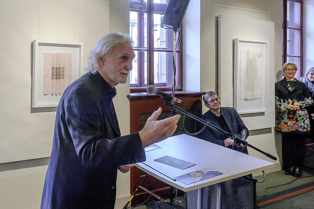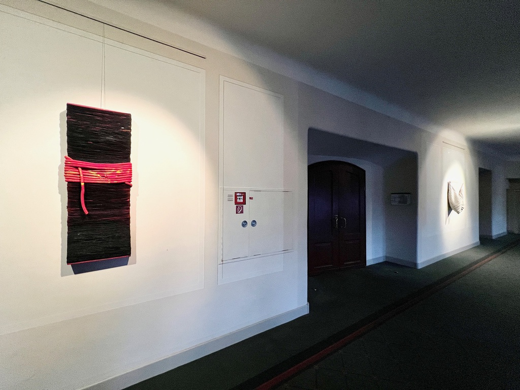 Auf kongeniale Weise vereinen sich in dieser Ausstellung Arbeiten von Beate Baberske mit den Fotografien. Der Faden, der sich durch die Werke der 1973 in Görlitz geborenen Künstlerin zieht, ist als stilbildendes Element wörtlich zu verstehen. Den Stoff, aus dem ihre Objekte sind, erschafft sie selbst. Sie wickelt und schnürt oder webt mit Garnen aus Leinen oder Baumwolle, Holz, Edelstahl oder Karton gesellen sich als weitere Elemente hinzu.