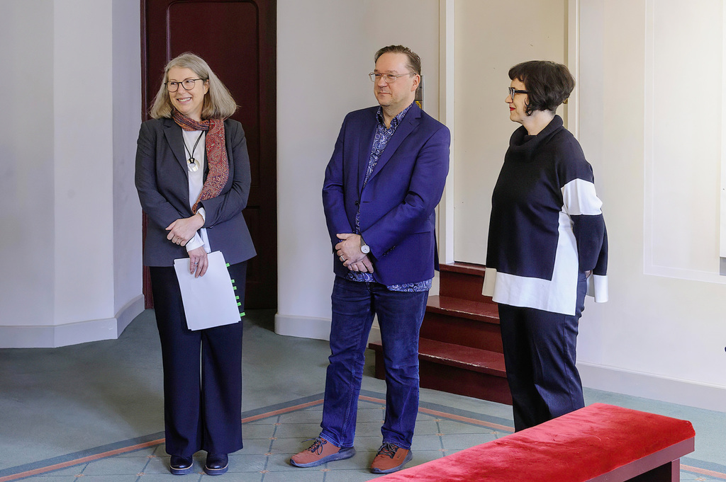 Als Leiterin bei der Diakoneo Paramentik in Neuendettelsau beschäftigt sich Baberske mit Textilien für Kirchenräume und Liturgie. Arbeiten, die aber auch für Gestaltung von Räumen in Unternehmen oder Organisationen genutzt werden können. Ihr freies Schaffen bezeichnet sie als „Textilkunstforschung“ und damit hat sie einen Begriff gefunden, der sehr gut umreißt, worum es ihr geht.