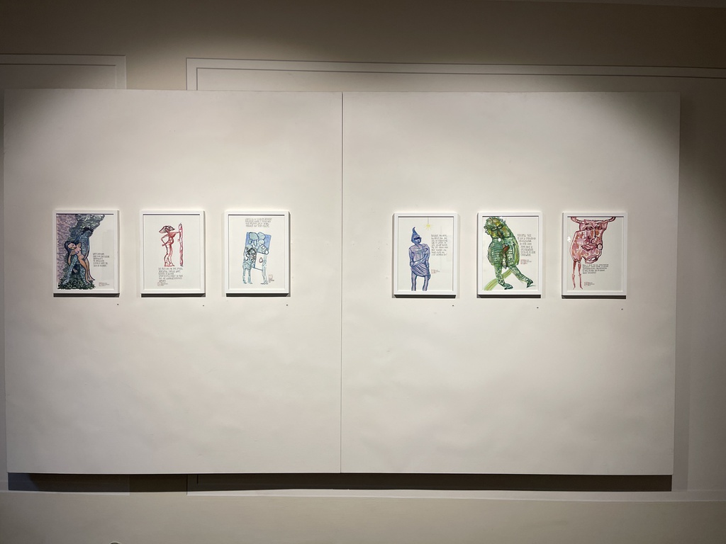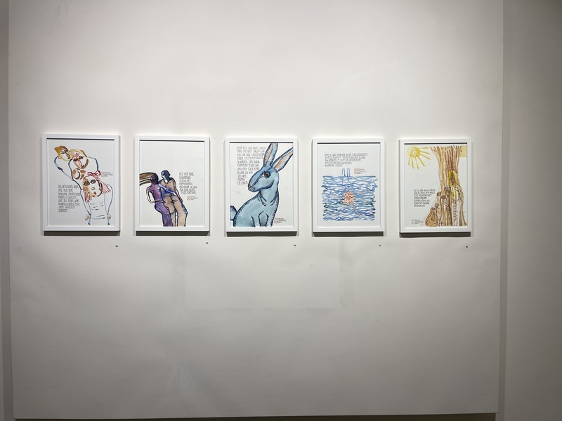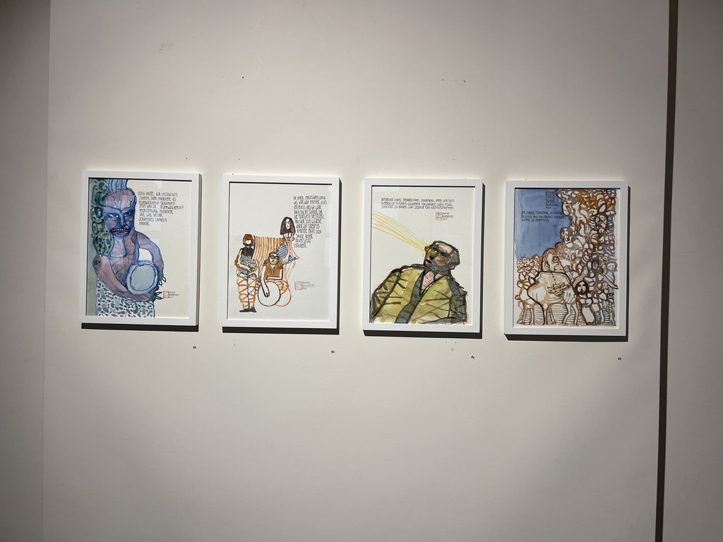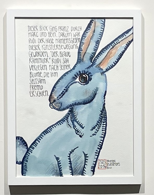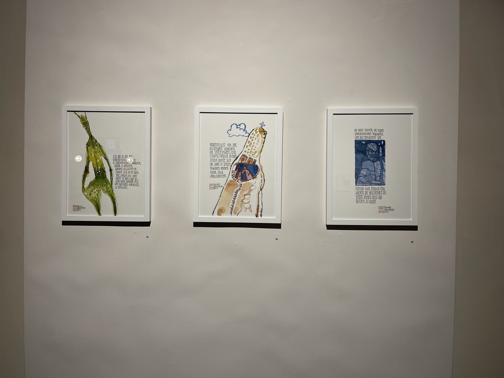 Das alles kann wie Mini-Parabeln an reale zwischenmenschliche Begebenheiten erinnern die hier ins Zeitlose übertragen und mit einem Augenzwinkern kommentiert werden. Jedermann fällt dann wohl etwas ein. Nur eben nicht mit Baumers scharfem Witz und seiner gekonnten Aquarell-Technik, die in Richtung Tusche weist. Spannen, wie Bild und Text absolut gleichwertig nebeneinanderstehen. Entsprechend betont Baumer auch, dass beides im Prozess zugleich entsteht und keiner den Vorrang hat. Er malt keine Dinge die ihm widerfahren sind, und illustriert auch keine Texte mit Bildern. Sondern überrascht sich am liebsten selbst. So geht es auch dem Publikum im