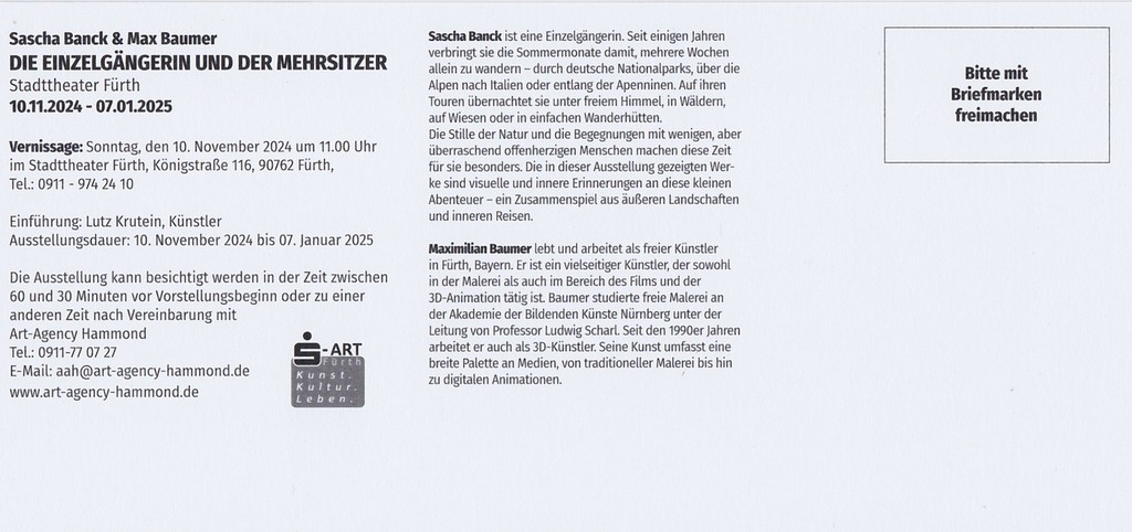 Maximilian Baumer lebt und arbeitet als freier Künstler in Fürth, Bayern. Er ist ein vielseitiger Künstler, der sowohl in der Malerei als auch im Bereich des Films und der 3D-Animation tätig ist. Baumer studierte freie Malerei an der Akademie der Bildenden Künste Nürnberg unter der Leitung von Professor Ludwig Scharl. Seit den 1990er Jahren arbeitet er auch als 3D-Künstler. Seine Kunst umfasst eine breite Palette an Medien, von traditioneller Malerei bis hin zu digitalen Animationen.