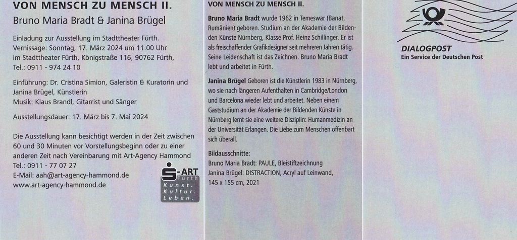 wurde 1962 in Temeswar (Banat, Rumänien) geboren. Studium an der Akademie der Bildenden Künste Nürnberg, Klasse Prof. Heinz Schillinger. Er ist als freischaffender Grafikdesigner seit mehreren Jahren tätig. Seine Leidenschaft ist das Zeichnen. Bruno Maria Bradt lebt und arbeitet in Fürth.