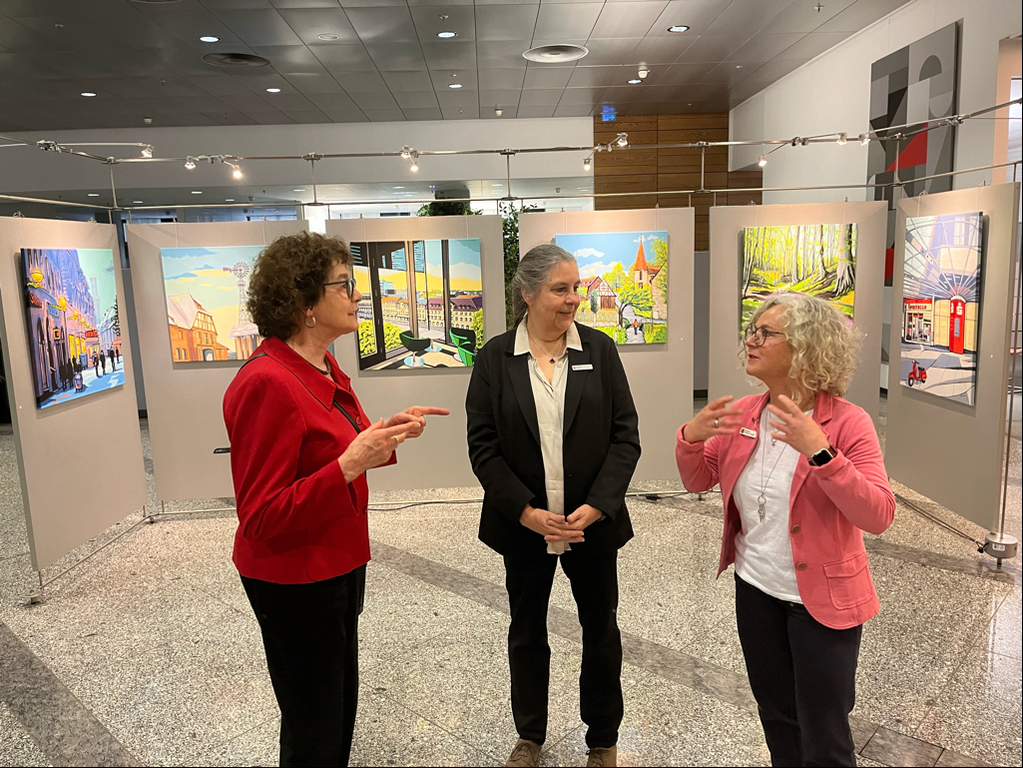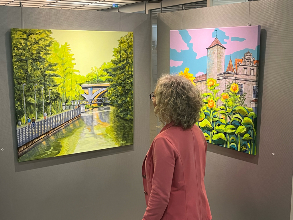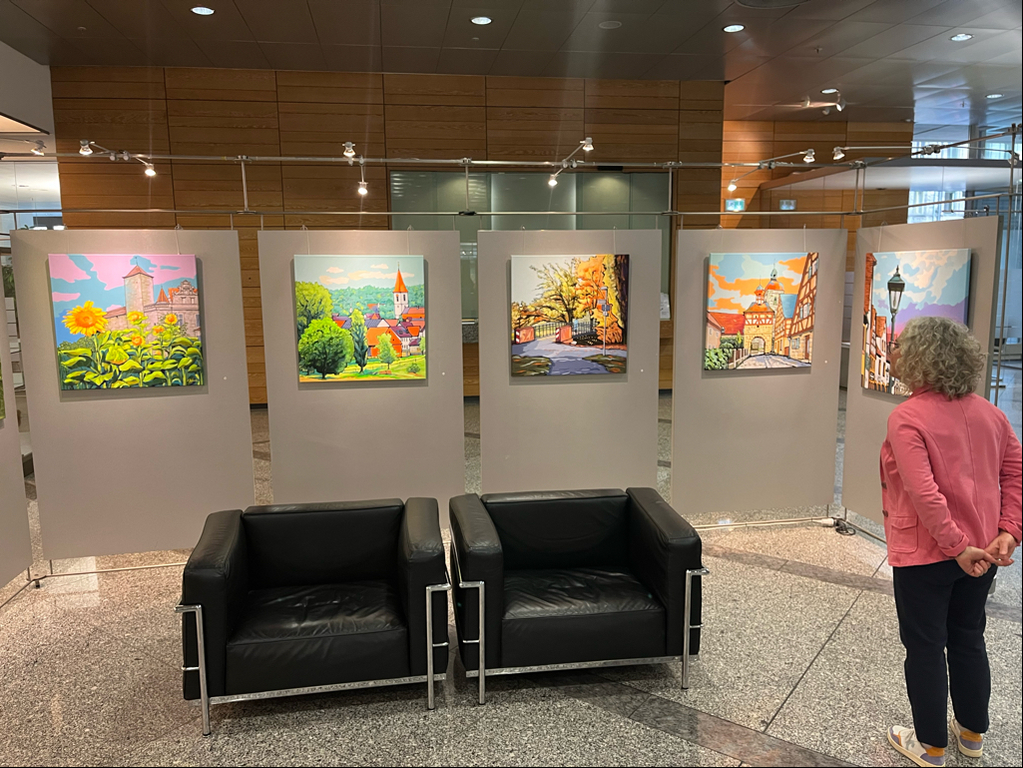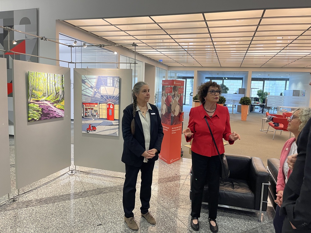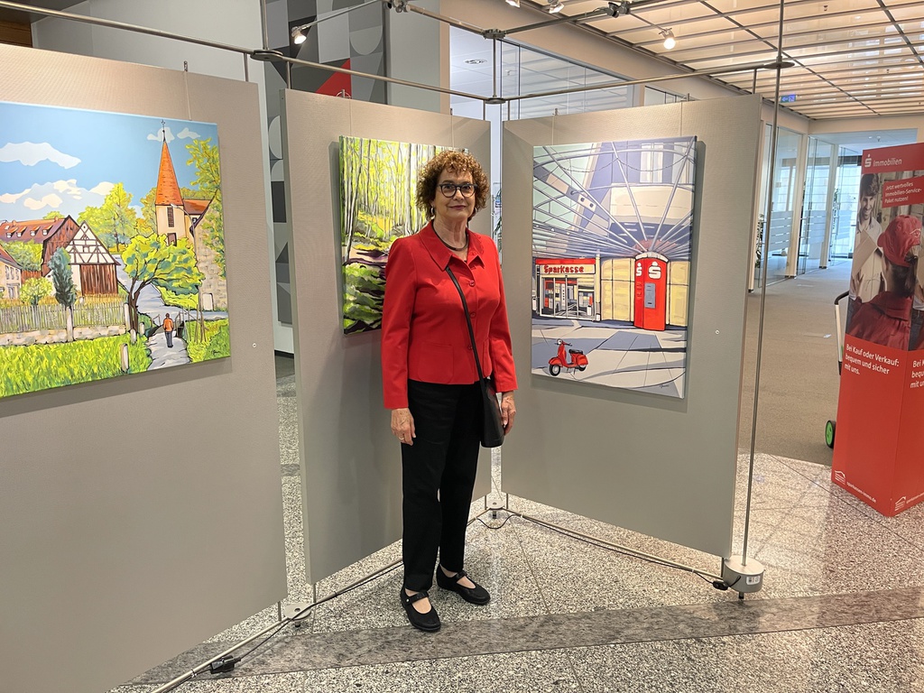 Alle Bilder wurden von ihr eigens für den Bildkalender 2025 angefertigt. Gesehenes gepaart mit Spaß und Spielerei ließ sie in ihre farbkräftigen, realistischen Werke mit einfließen. Kurz vor dem Weltspartag im Oktober wurde der Kalender in den Räumlichkeiten der Sparkassen-Hauptgeschäftsstelle in der Maxstraße präsentiert.
