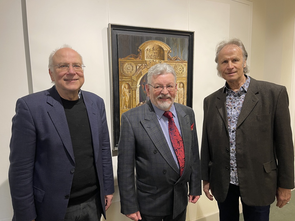 Wenn wir also in die heutige Ausstellung schauen, so sehen wir ausschließlich Werke (26 Gemälde, zwischen 1991/„Die segnende Hand“) bis 2024) aus jener Schaffensperiode des Meisters, die nach 1989 bis heute entstanden sind.