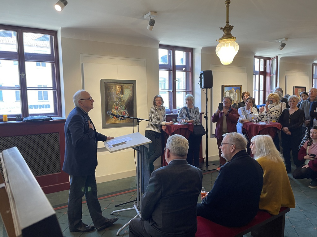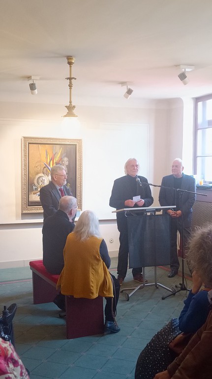 Dass Sie die Stadt Fürth in deren wunderbaren Räumen des Stadttheaters mit einer Einzelausstellung würdigt, ist eine Geste, für die wir als Mitbürger und Bewunderer in ihrer Heimatstadt zu sehen sind, in der sie, gemeinsam mit Ihrer Frau, seit 1986 ihren festen Wohnsitz haben, und demnach hier beinahe seit vier Jahrzehnten leben und arbeiten.
