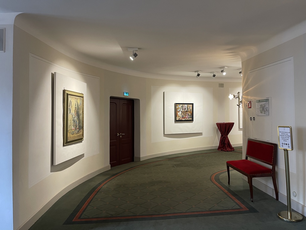 Bezüge zu Lassel rumänischem Geburtsland finden sich mehrfach in dessen Gemälden. Nur eines sei hier erwähnt, das hier ausgestellt ist und wo wir die Wiedergabe einer alten Landkarte erkennen. (EDIKT, Parkett, Foyer links, Nr.:114):
