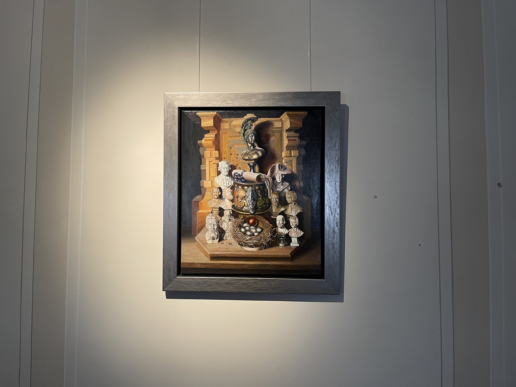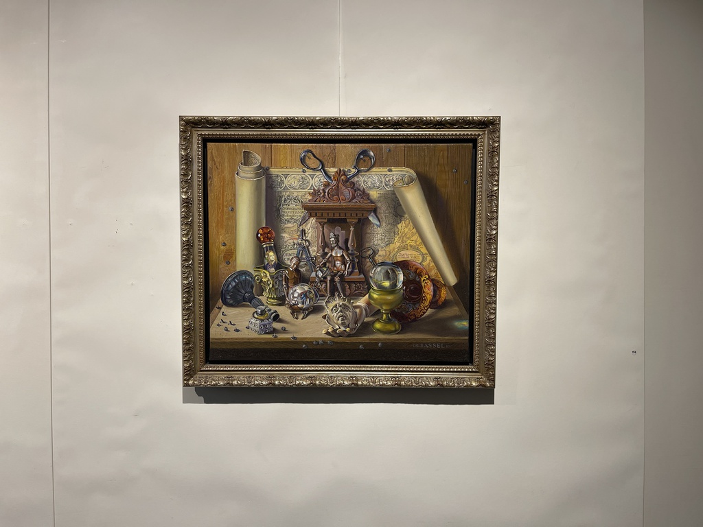 Michael Lassel erschafft mit seinen Werken eine faszinierende Verbindung aus handwerklicher Meisterschaft und tiefgründiger Reflexion über Geschichte, Kultur und Existenz. Seine Malerei, geprägt vom Stil des Trompe-l'œil und inspiriert von der niederländischen Kunst des 17. Jahrhunderts, führt uns an die Schnittstelle zwischen Realismus, Surrealismus und Idealismus. In Lassels Gemälden werden alltägliche Objekte in komplexen Arrangements zu Trägern symbolischer Bedeutung. Sie erzählen von menschlicher Schaffenskraft und den zeitlosen Herausforderungen des Daseins. Durch diese poetische Verdichtung wird die materielle Welt zu einer Bühne, auf der sich Realität und Traum verweben. In Lassels Malerei finden Betrachter eine tiefe Balance zwischen intellektueller Konstruktion und emotionaler Ausdruckskraft – ein Schaffensprozess, der uns mit uns selbst und einer zunehmend virtuellen Welt versöhnt.