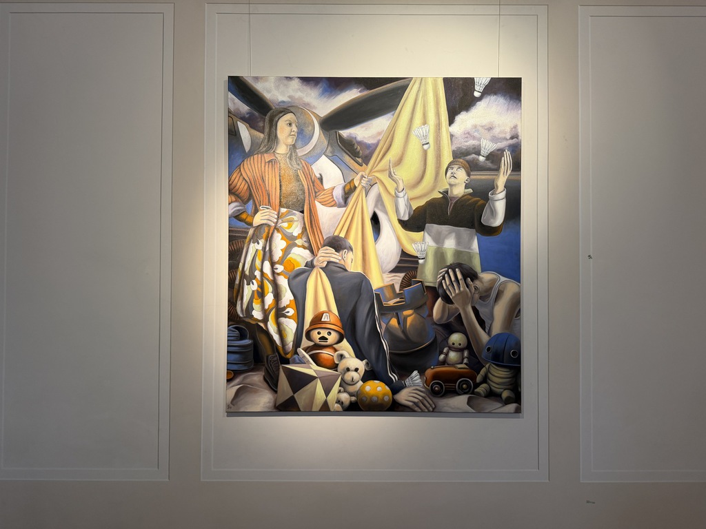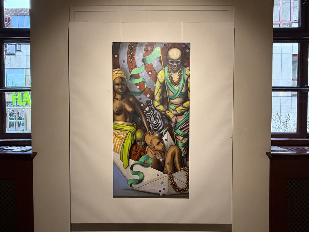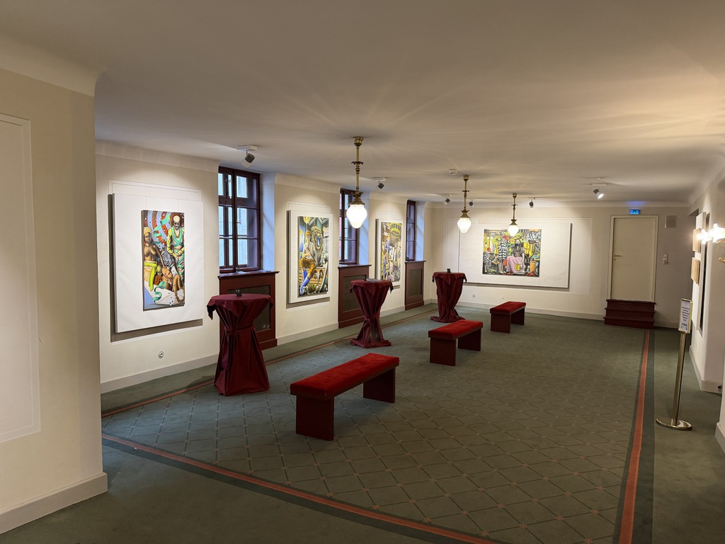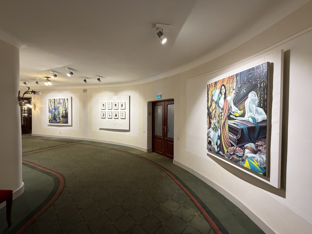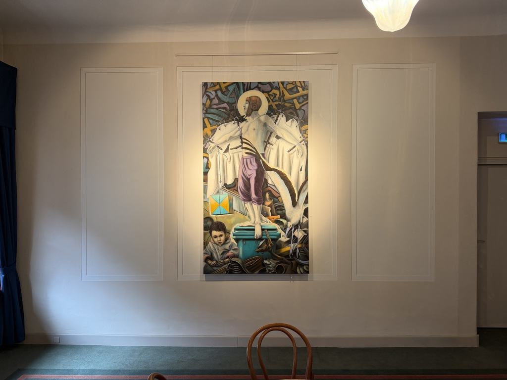 Wer dann an den Arbeiten erst mal vorbeiflaniert, nimmt wahr, dass erstens beide Künstler figürlich malen – also nicht abstrakte Farbflächen oder ein Gewirr von Linien zeigen; dass sie zweitens auf ihrem Malgrund bleiben und der Leinwand nichts applizieren, weder Zweige noch Zahnbürsten, weder Fäden noch Vogelfedern. Drittens, dass es mit dem Flanieren nicht getan ist! Denn beide Künstler bilden nicht einfach plakativ Eins zu Eins was ab – ihre Szenen sind hintergründig!