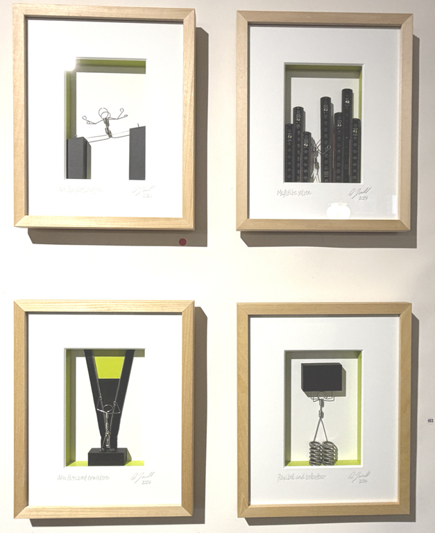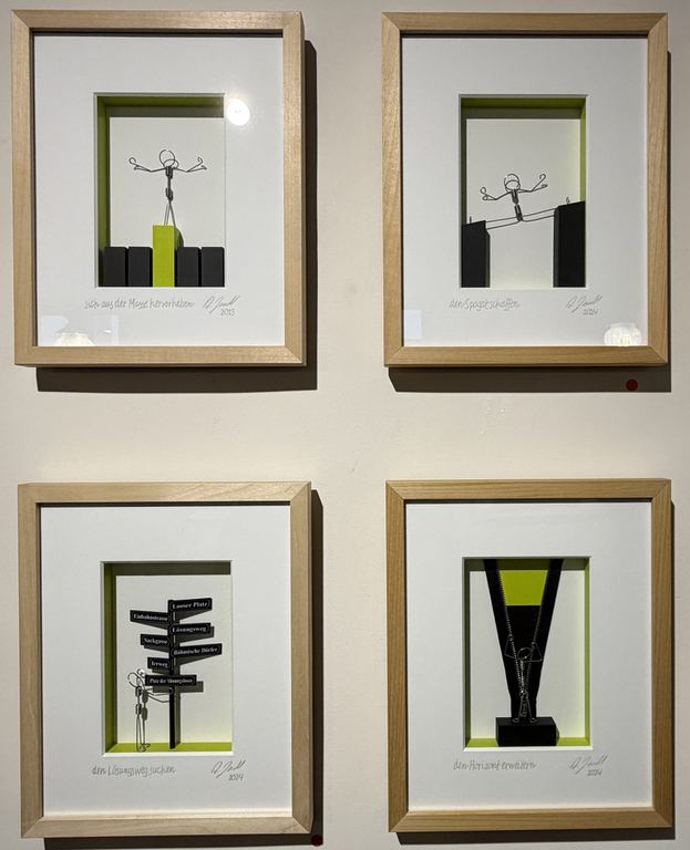Schauen Sie die Bilder an, lassen Sie sich von ihnen anregen, sprechen Sie drüber! Lassen Sie sich vielleicht auch locken, eines zu erwerben. Das könnte allerdings unangenehme Folgen haben: Schnittstellen im Geldbeutel!