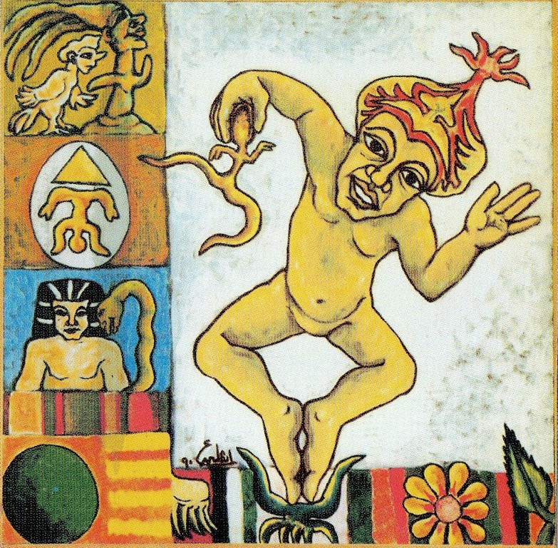 Eveline Ashamalla’s pictures are not narrative, they rather conjure up associations. They integrate mystic and surrealistic elements with ancient Egyptian symbols. Her figures are secret and ambivalent: children with adult faces, animals with human eyes, flower leaves like tongues of flame seem to belong simultaneously to different times and worlds. Feminine intuitive, knowledge of natural science and magic are set up in balance to the surrounding materialistic world and seemingly connect the past to an imaginary future.