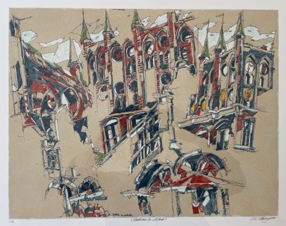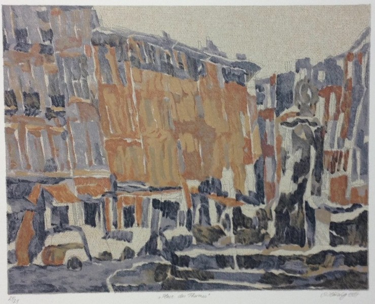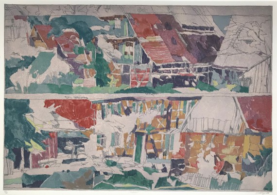 Coloured stone lithograph, 16 x 16 cm, Edition 44 of 60