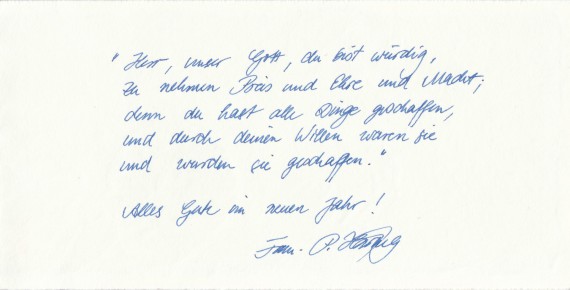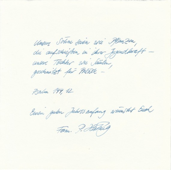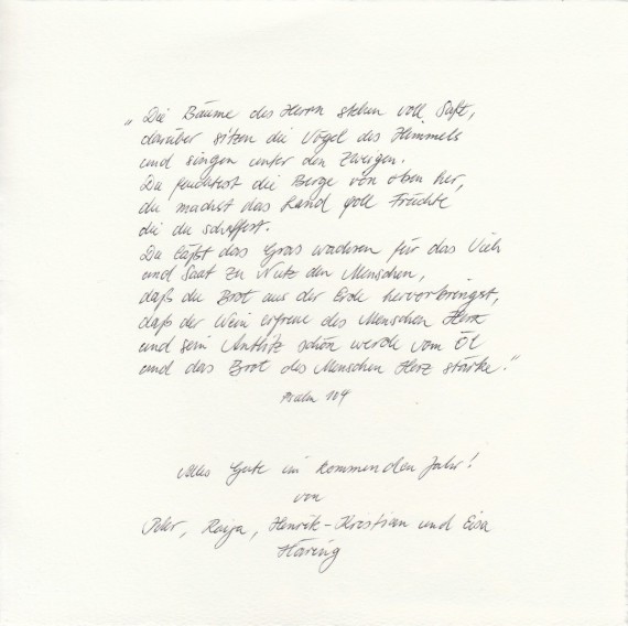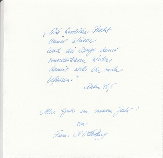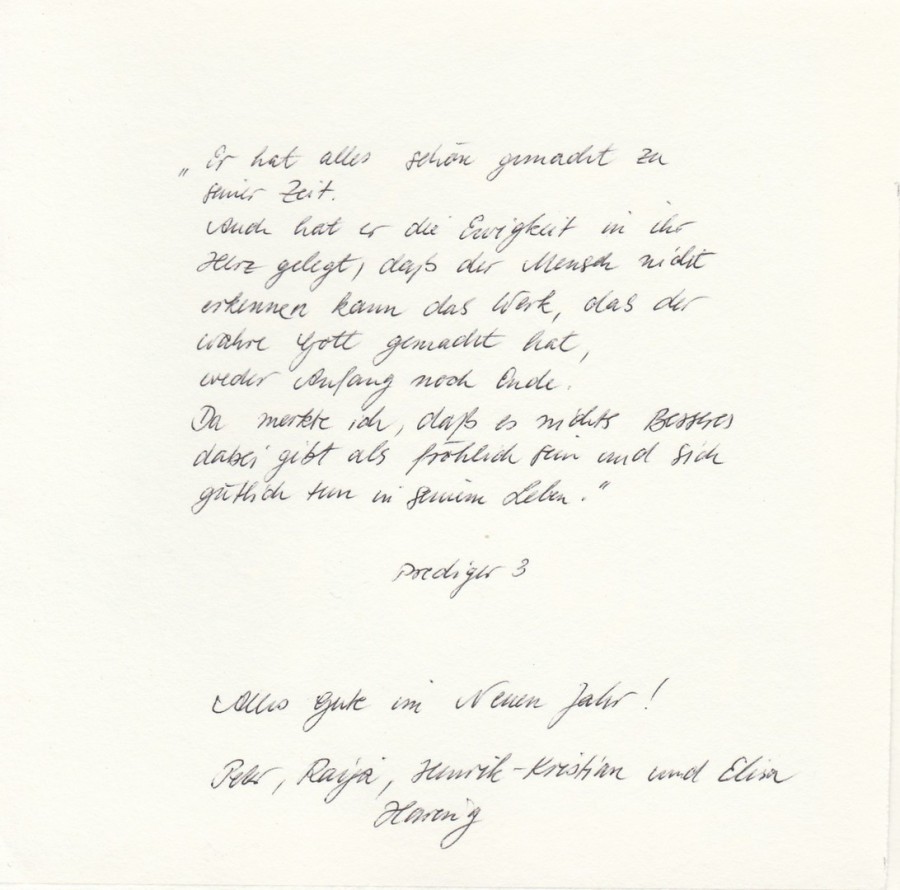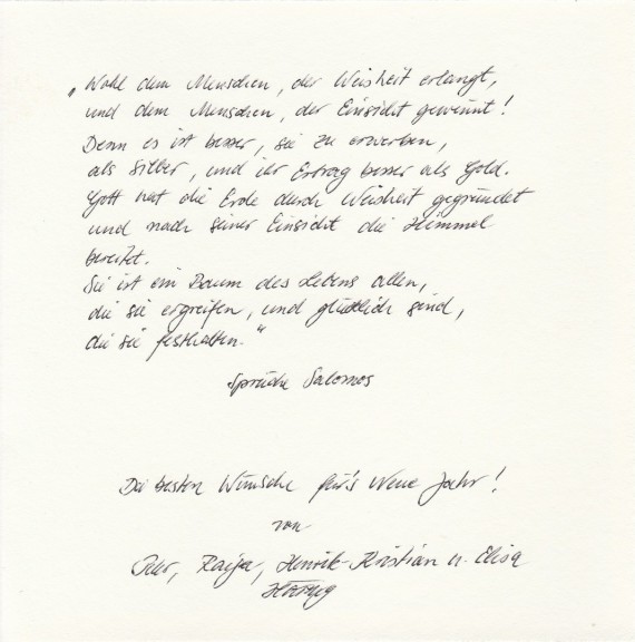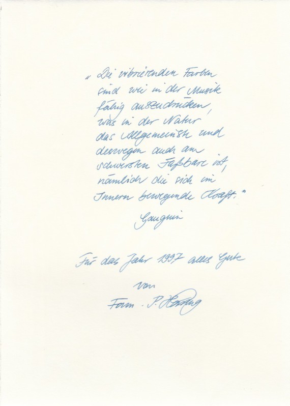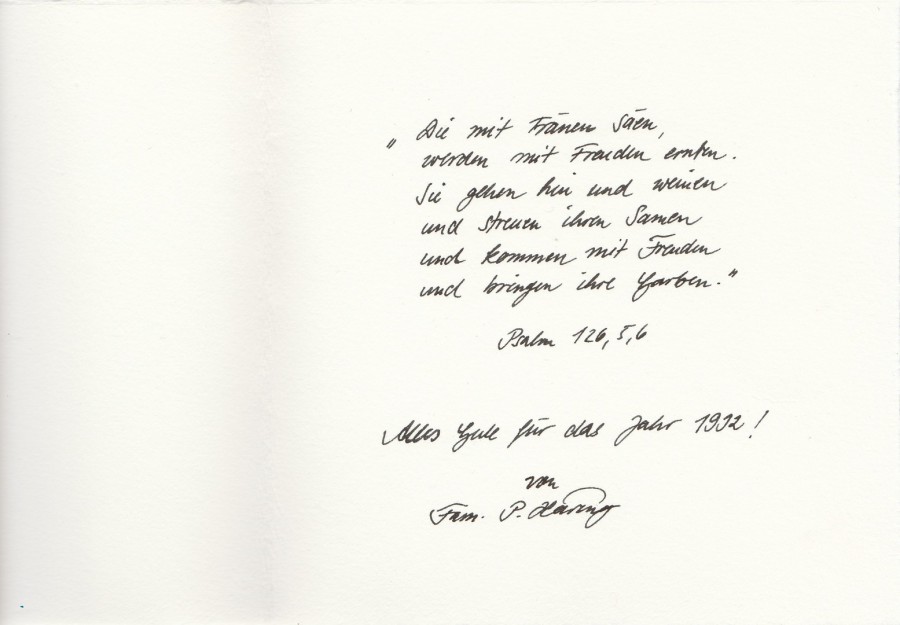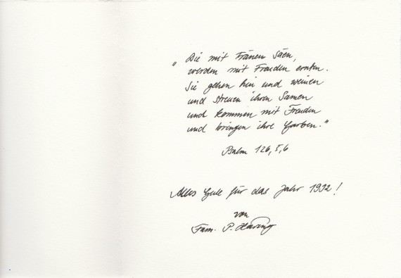 Another New Year’s greeting from Häring to the Hammonds, with a personal inscription.