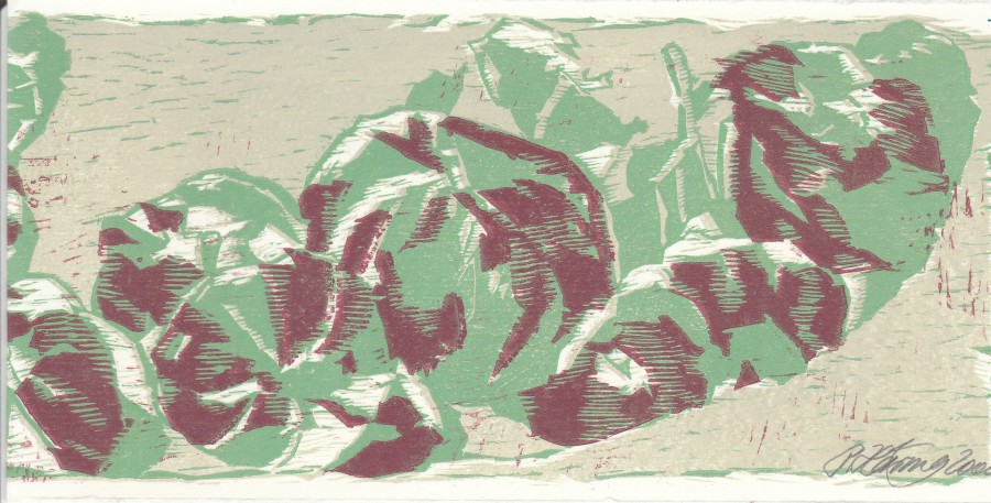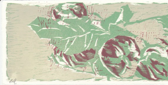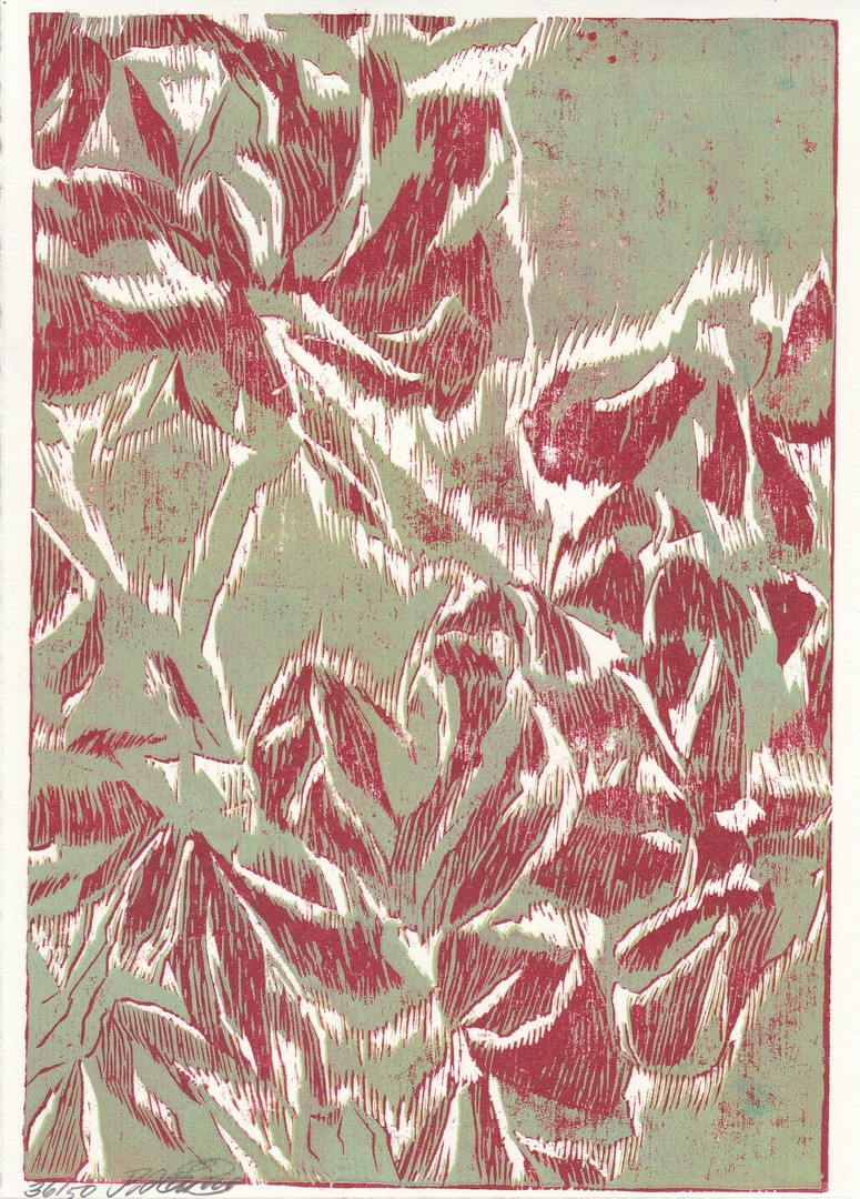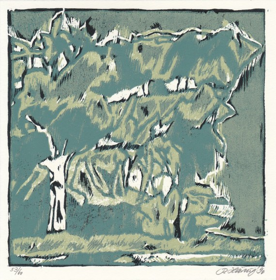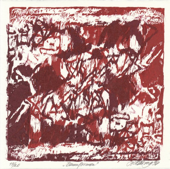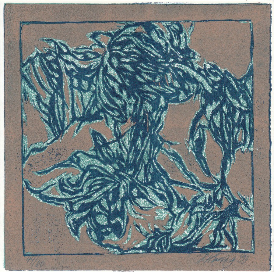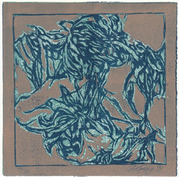 Coloured woodcut, 16 x 16 cm, Edition 13 of 20
