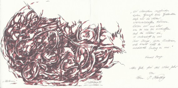 A 1995 New Year’s greeting to John and Renate Hammond, with an inscription from the artist.