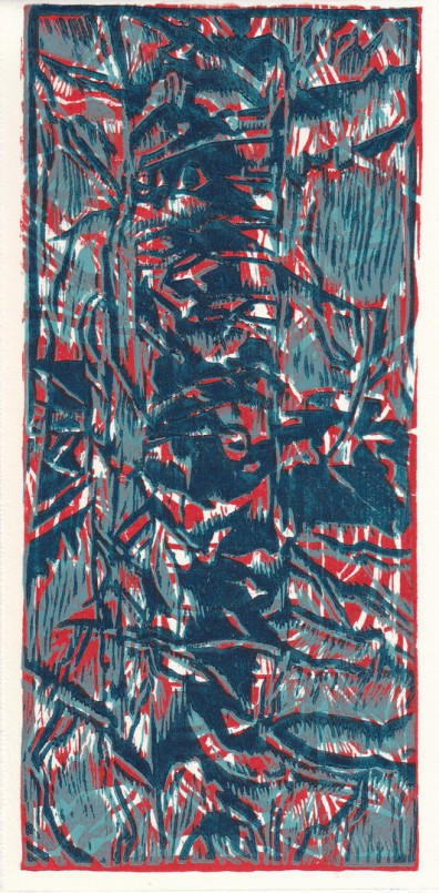 Coloured woodcut, 21.5 x 11 cm, Edition 27 of 50