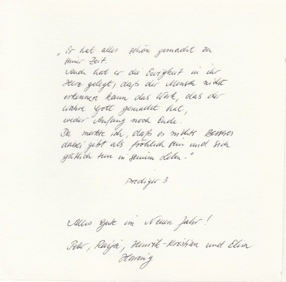 A special New Year’s greeting from Peter Häring to John and Renate Hammond, featuring a personalized inscription.
