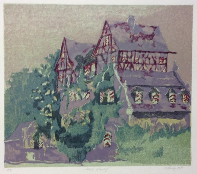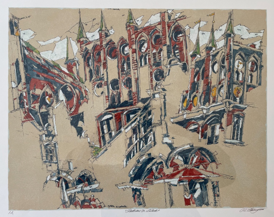 This lithograph was a personal gift from Peter Häring to John and Renate Hammond, commemorating the 10th anniversary of their 'Galerie am Theater' in Fürth, Bavaria in 1989.