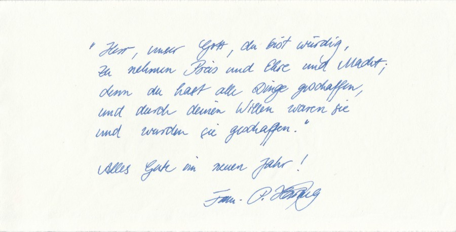 A personal 1992 New Year’s greeting, with a heartfelt inscription for John and Renate Hammond.